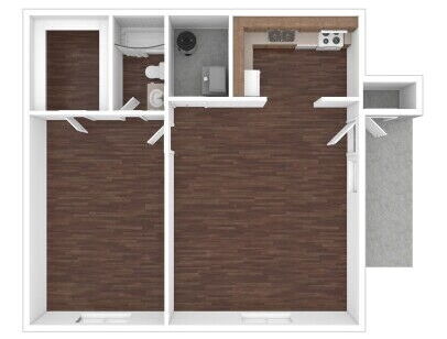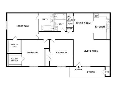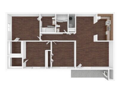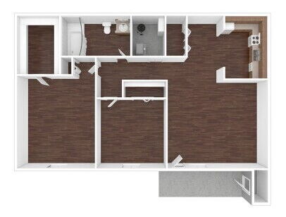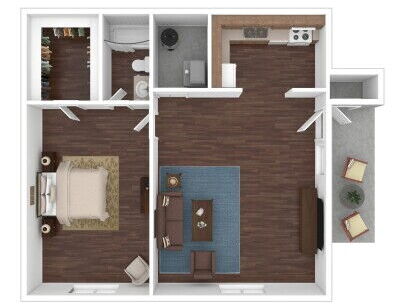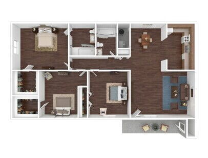 Our Tamarind floorplan features two spacious bedrooms with large closets, dining area, and a patio.
